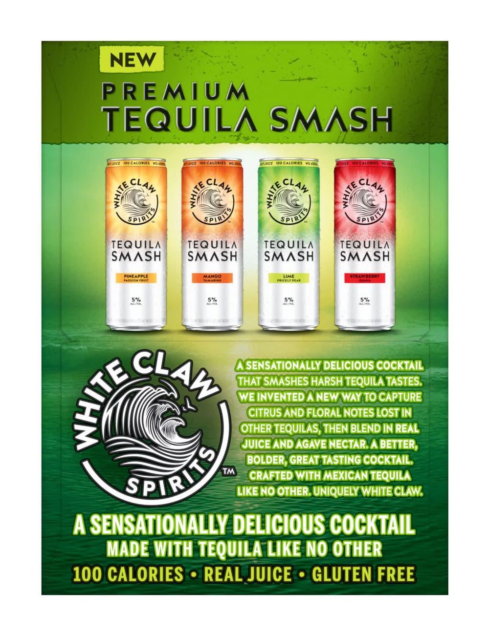 White Claw™ Tequila Smash Variety Pack is a mash-up of flavors that transforms Tequila into the social drink it was meant to be. Uniquely refreshing tasting in four sensationally delicious flavor pairings: tropical Pineapple Passion Fruit, juicy Mango Tamarind, zesty Lime Prickly Pear, and rich Strawberry Guava. This pack has you and your friends set up for backyard BBQ season and beyond. • Sabor: Assorted • Tamaño del paquete: 8 • Bebidas alcohólicas por volumen: 5% • Empaque: Reutilizable