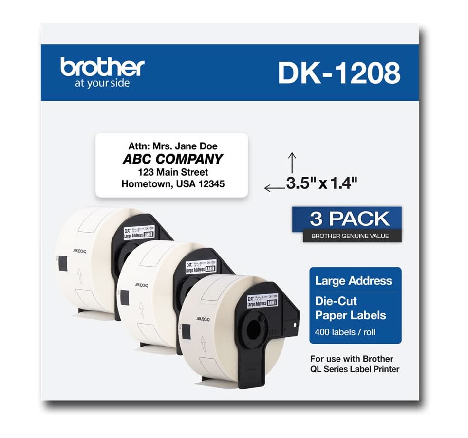 Brother Address Die Cut Paper Labels Dk-1208, 3.5x1.4 in (3 ct)