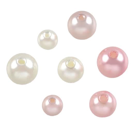 Bead Landing Plastic Pearl Round Beads, 8mm-12mm, Ivory-Pink (1 lbs)