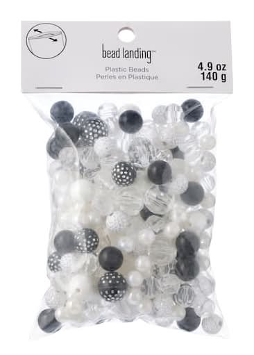 Bead Landing Plastic Beads, Black-White (4.9 oz)