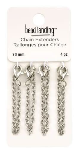 Bead Landing Chain Extender, 70 mm , Rhodium (4 ct)