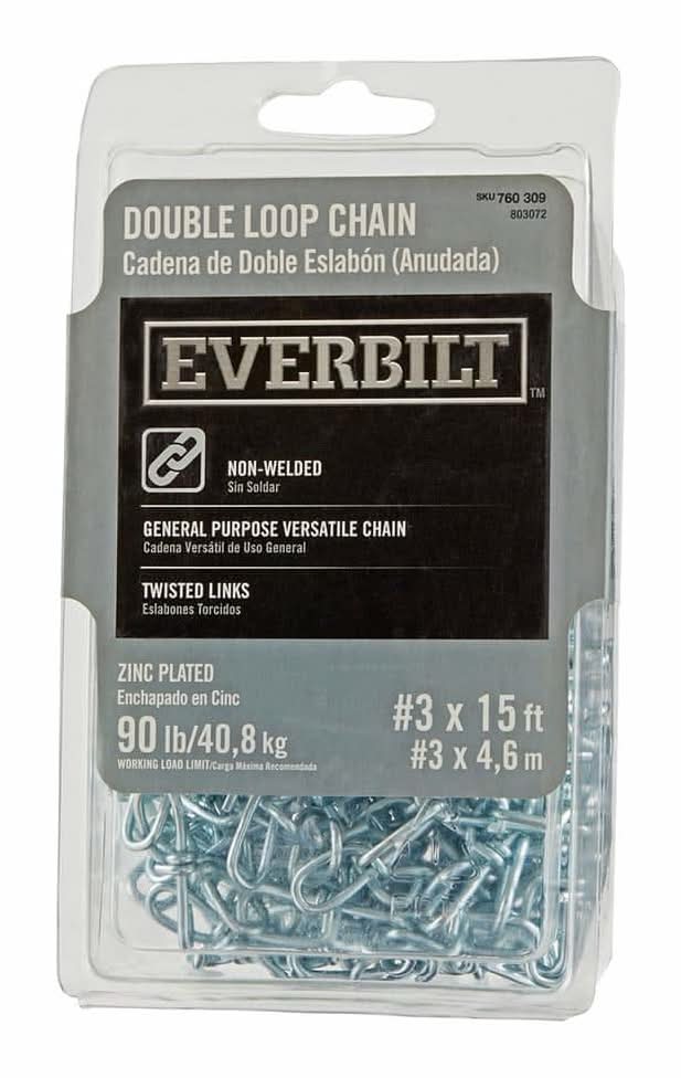 Everbilt Zinc Plated Steel Double Loop Chain, 3x15 ft