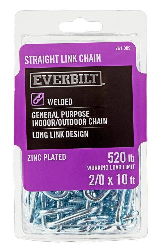 Everbilt Zinc Plated Straight Link Chain, 2x1 ft