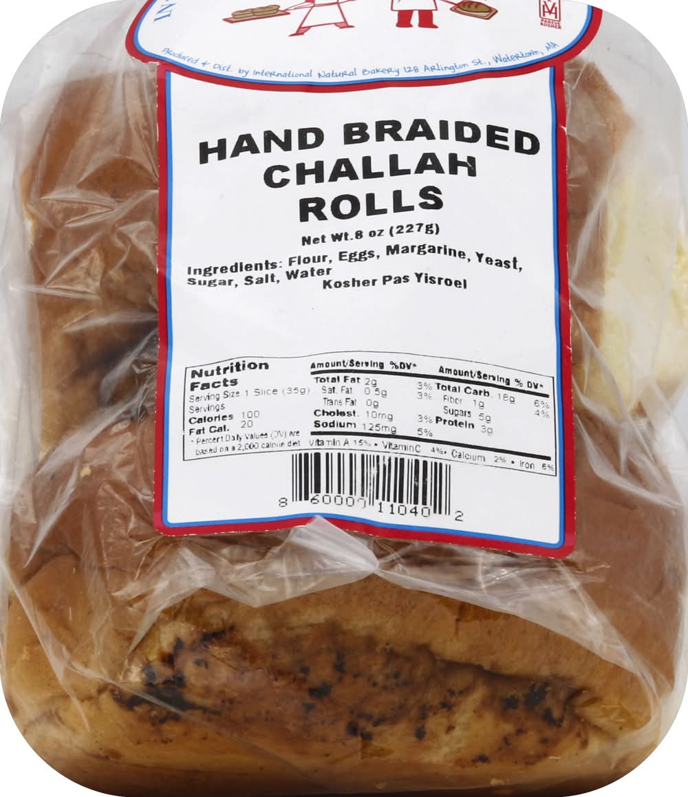 International Natural Bakery Hand Braided Challah Rolls (8 oz)