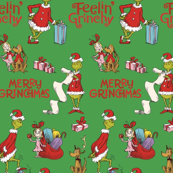 Grinch Holiday Roll Wrap on Green Background, 40 In