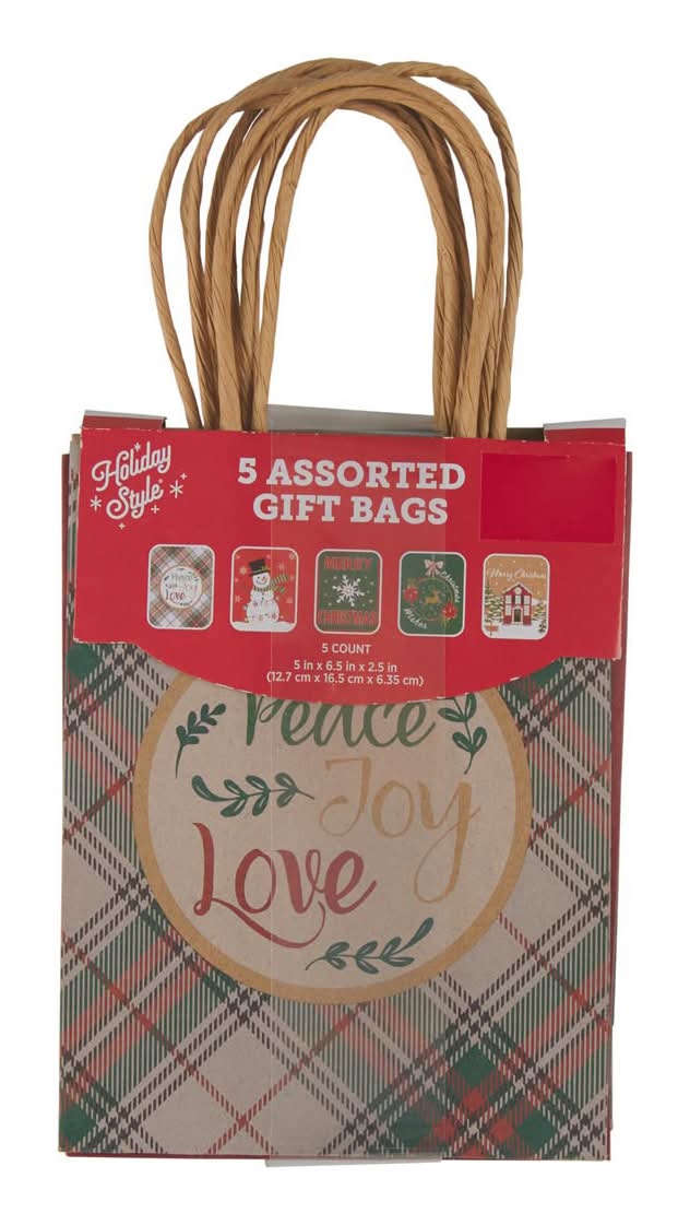 Holiday Style Christmas Kraft Bags, S, Assorted (5 ct)