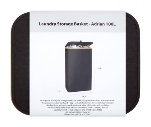 Hennez Adrian Laundry Storage Basket 100 L, Black