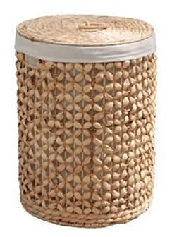 Water Hyacinth Round Laundry Hamper With Lid, Large, Tan