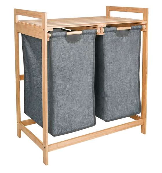 At Home Bamboo Laundry Double Sorter With Removable Liners