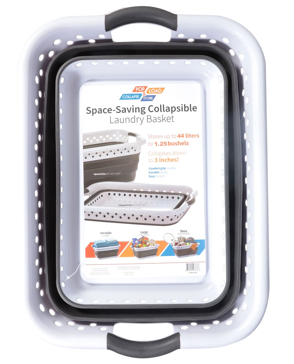 Pop & Load Collapsible Plastic Laundry Basket, White-Gray