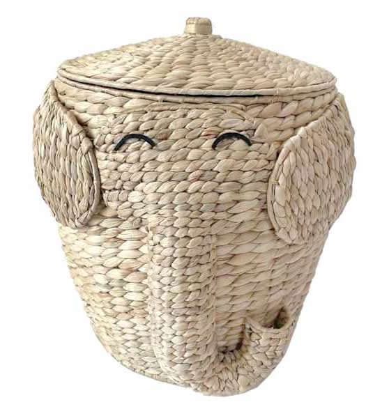 Tiny Dreamers Elephant Water Hyacinth Laundry Hamper, Brown