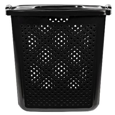Home Logic Bushel Lidded Hamper Plastic Clothes Hamper With Lid 23.29 Gallon, XL, Black