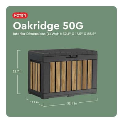 Keter Oakridge Oak Resin Deck Box 90 Gal, Brown