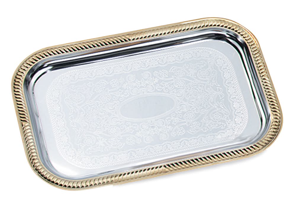 TableCraft 18.25"X12.5" Chrome Plated With Embossed Pattern Rectangular Tray