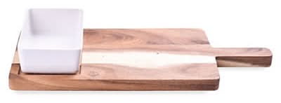 Acacia Wood Paddle Board & Stoneware Bowl Serving Set (2 ct)