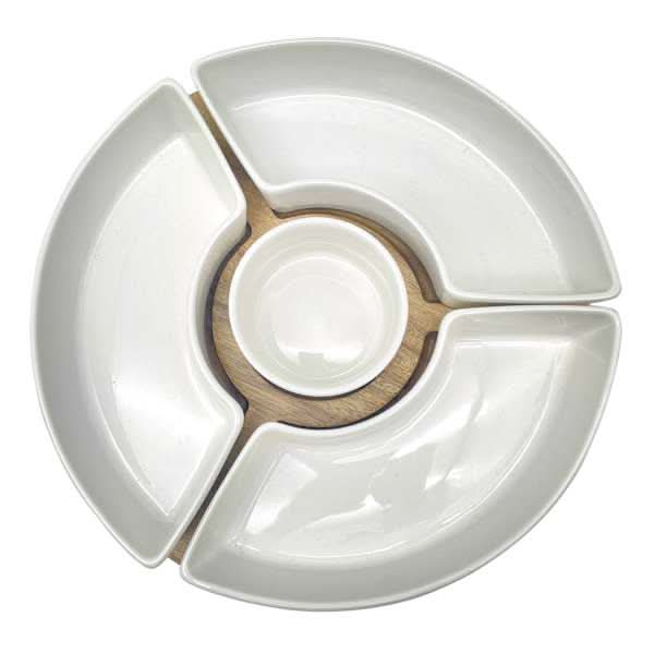 At Home Honeybloom Round Ceramic Bowl With Wooden Tray Set, Natural (5 ct)