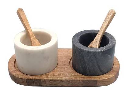 Ashland Marble Bowls With Mango Wood Tray & Spoons Set