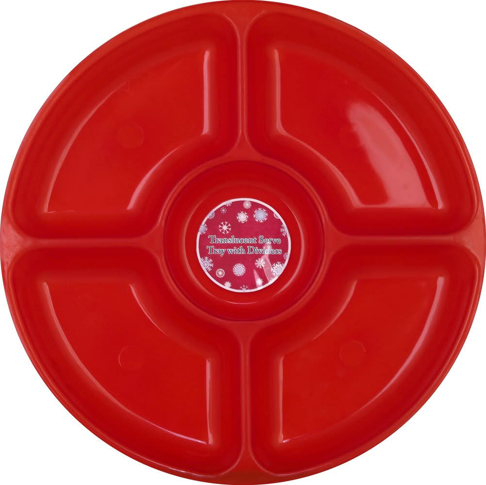 Party Essentials Hard Plastic Round Divided Serving Tray, 12 Inch, Clear